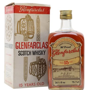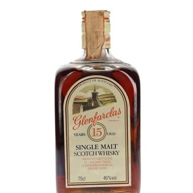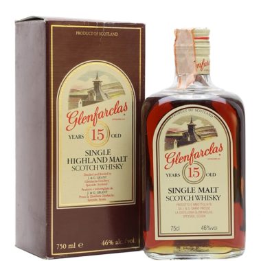 75cl / 46% / Distillery Bottling – An old bottling of Glenfarclas 15 year old whisky, in the rectangular bottle typical of the era. We estimate this bottle dates from the 1980s.