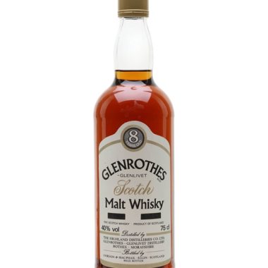 75cl / 40% / Distillery Bottling – A 1970s early outing as a distillery-bottled single malt for sophisticated Speysider Glenrothes. From back in the days when 8 years old was considered pretty old for whisky. A very rare bottle.