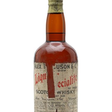 75cl / 40% – A bottle of Alex Ferguson blended whisky, not to be confused with a similarly named expression carrying a certain ex football manager’s face. This is a blend of Highland Malt and Scotch grain, which we estimate dates from the 1930s.