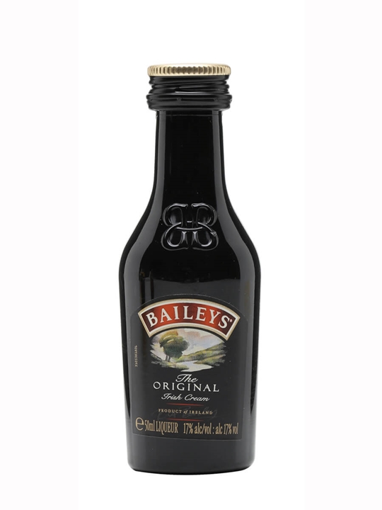 5cl / 17% – A miniature of ever-popular whisky liqueur Baileys. A blend of cream, cocoa and Irish whiskey, this is fantastic as an alcoholic ice-cream sauce.